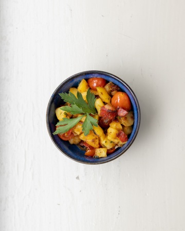 s křupavou slaninou a rozmarýnovým olejem