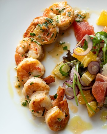 s restovanou barevnou zeleninou a grepovou omáčkou s červeným pepřem